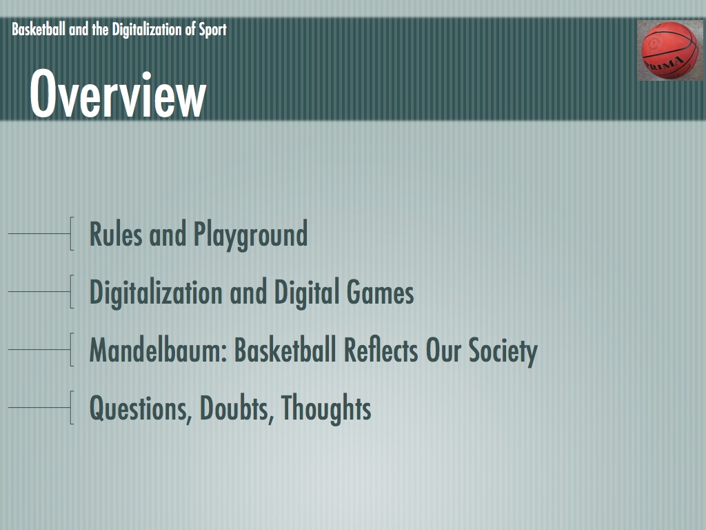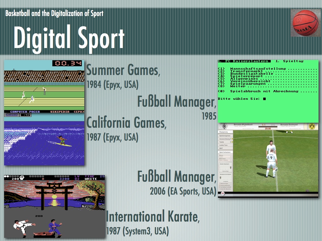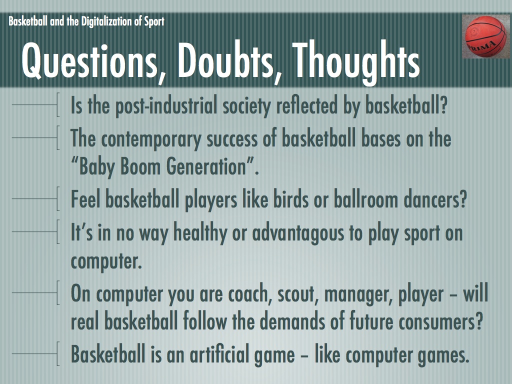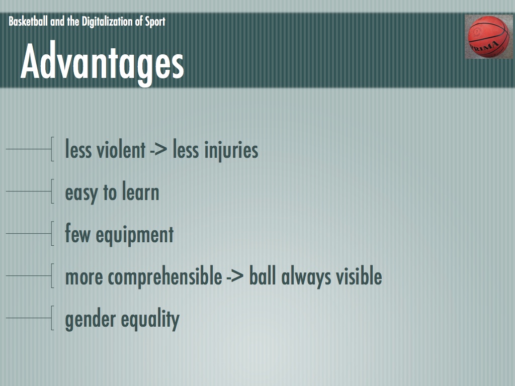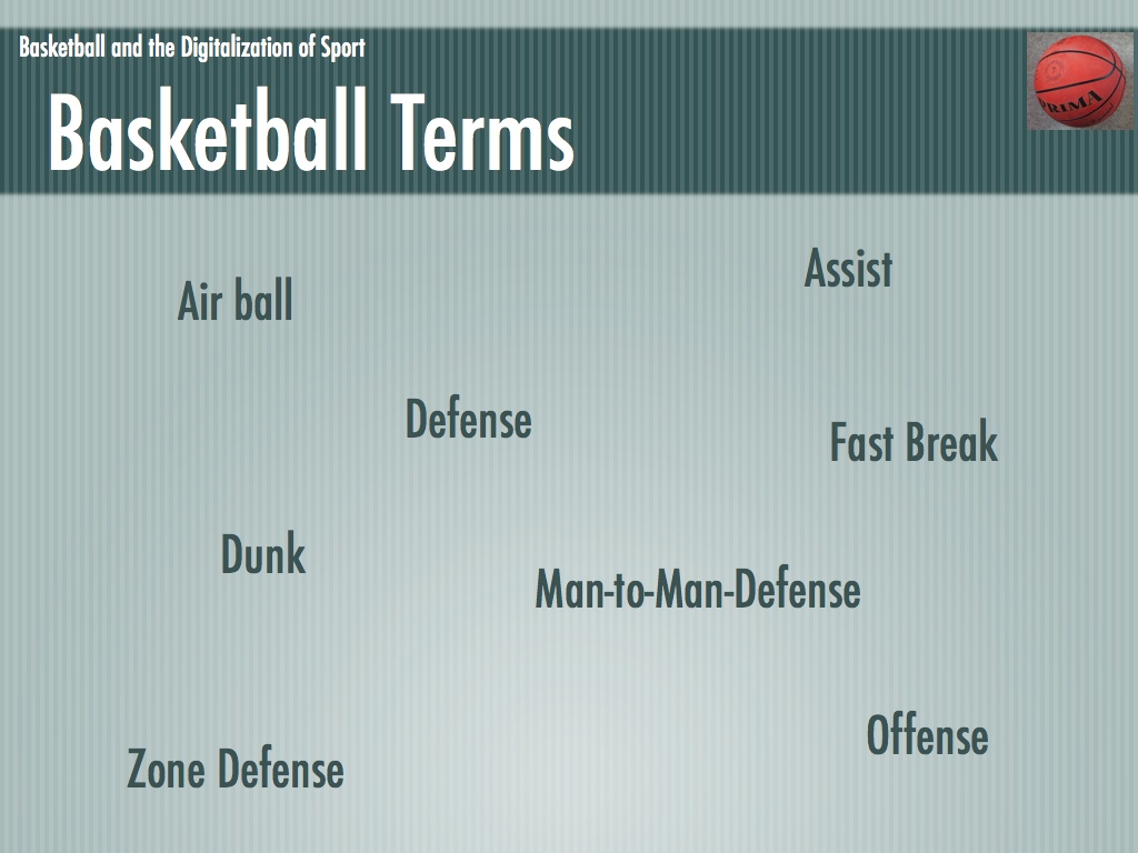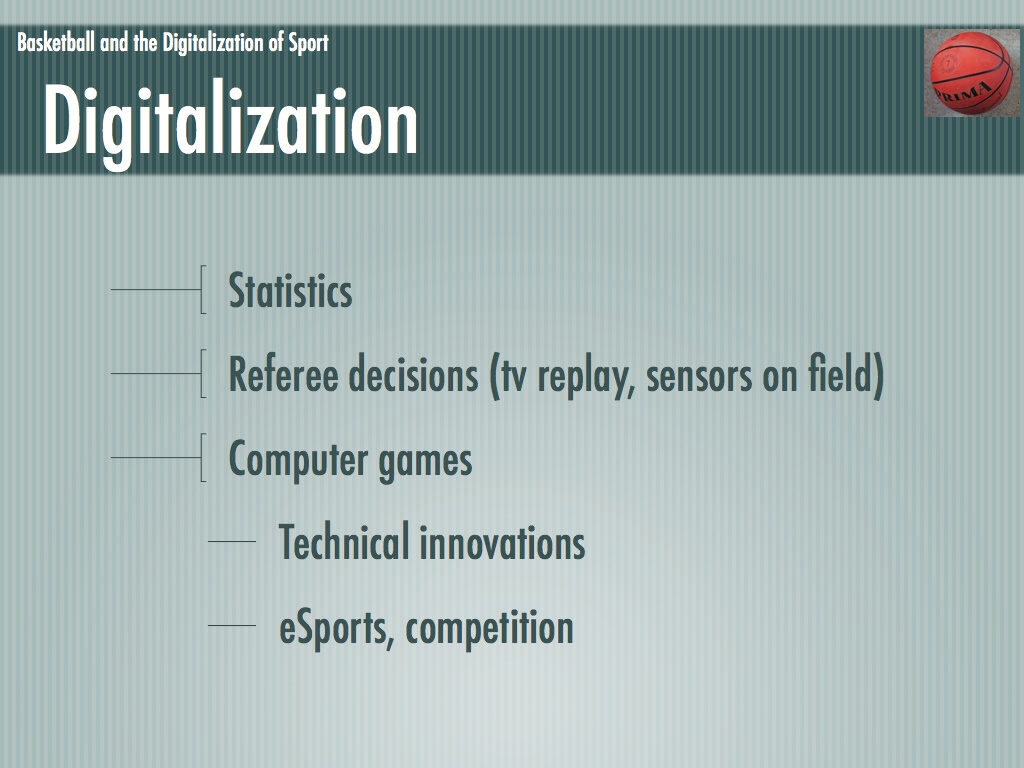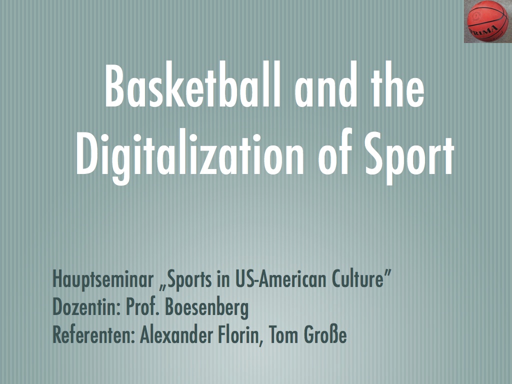 Die Folien für mein Referat über Basketball und die Digitalisierung des Sports. Leider waren nicht mehr alle enthaltenen Medien vorhanden (an deren Stelle ist ein graues Rechteck zu sehen).